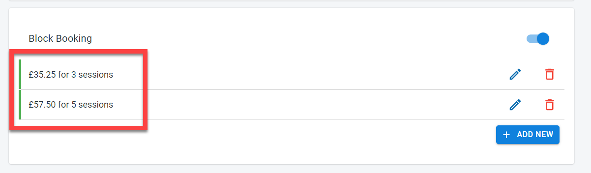 - Overrise session - This option could be used to override the drop in fees for individual sessions. In the screenshot above, we have set the drop-in fees as 12£ but the session on 19th Jan and 2nd Feb will be charged at 12.50£ for drop-in students.