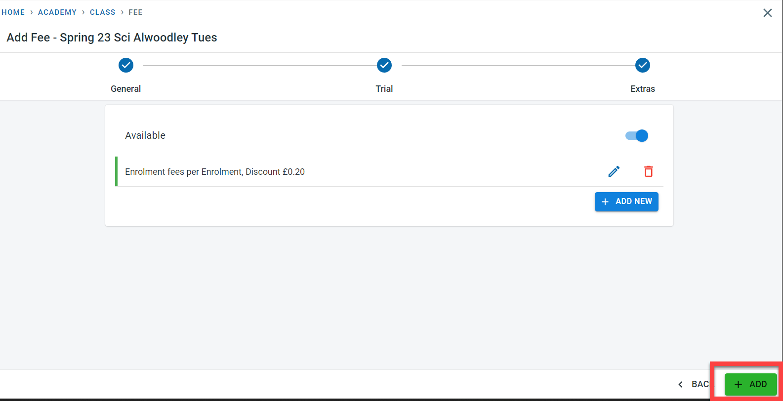 Once all the fee information is added, click on “ADD”
