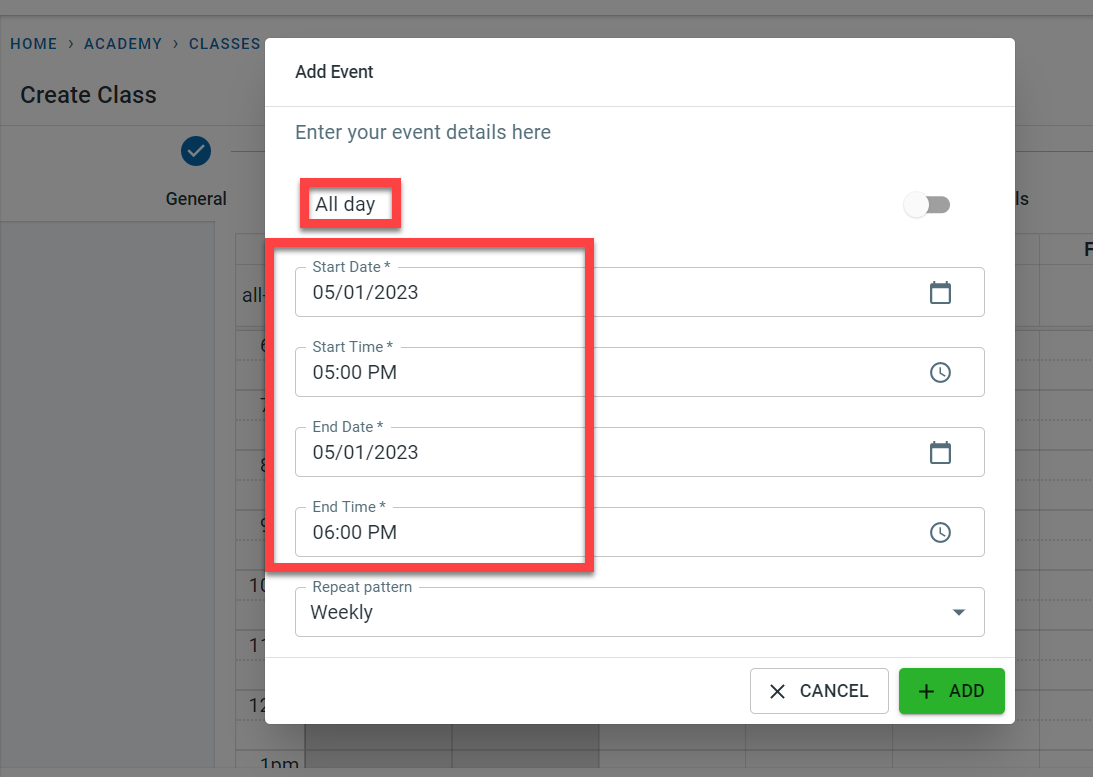 If the class is free, activate the “Is Free?” switch.