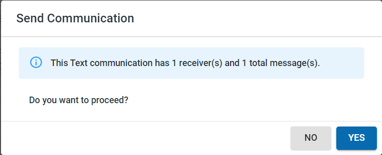 A confirmation message would be displayed to confirm the number of SMS text messages that would be sent out for the contacts selected based on the To and Communication type fields entered.