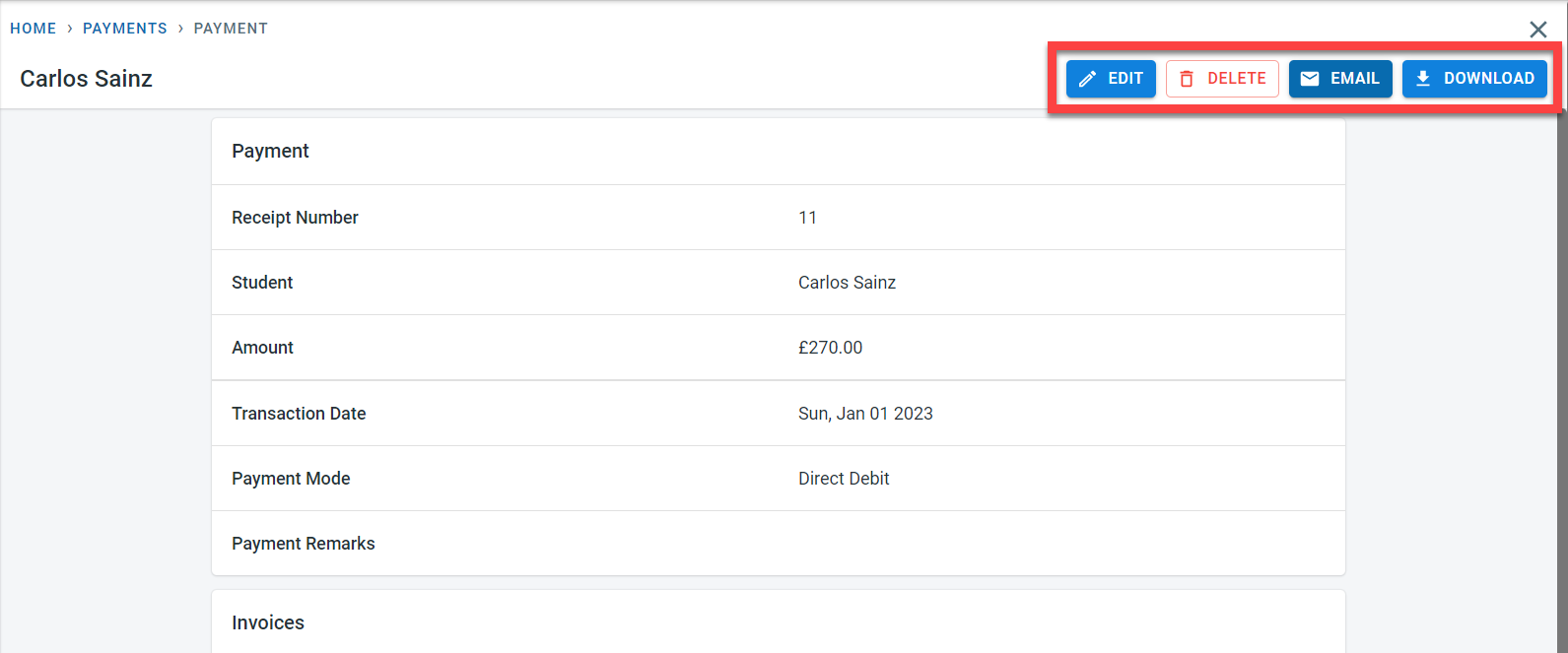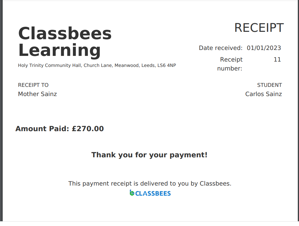 The email receipt setting in the academy and the email receipt setting in the student controls whether emails can be automatically sent to the finance contact for the student when the payment is recorded in the system.