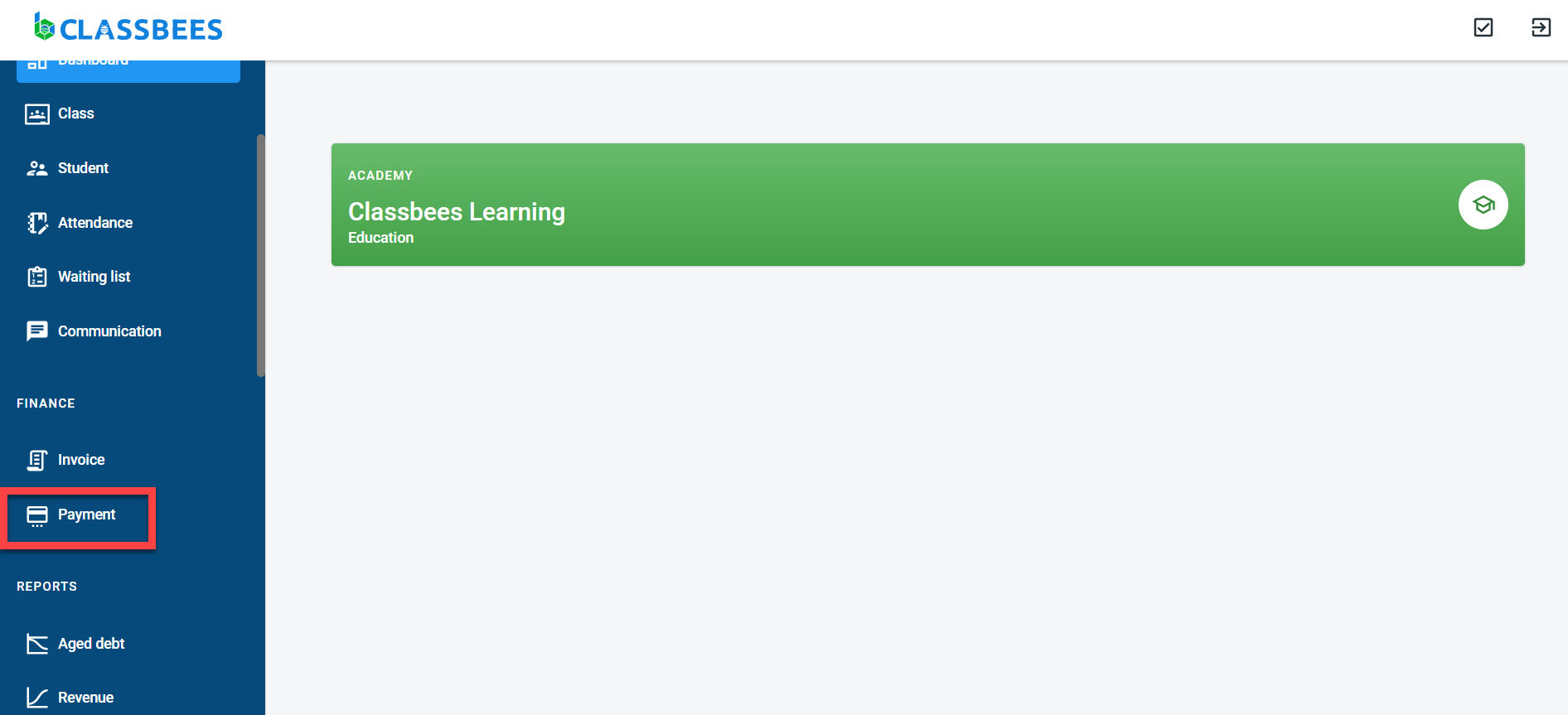To view and record payments in the system, select “Payment” from the main menu