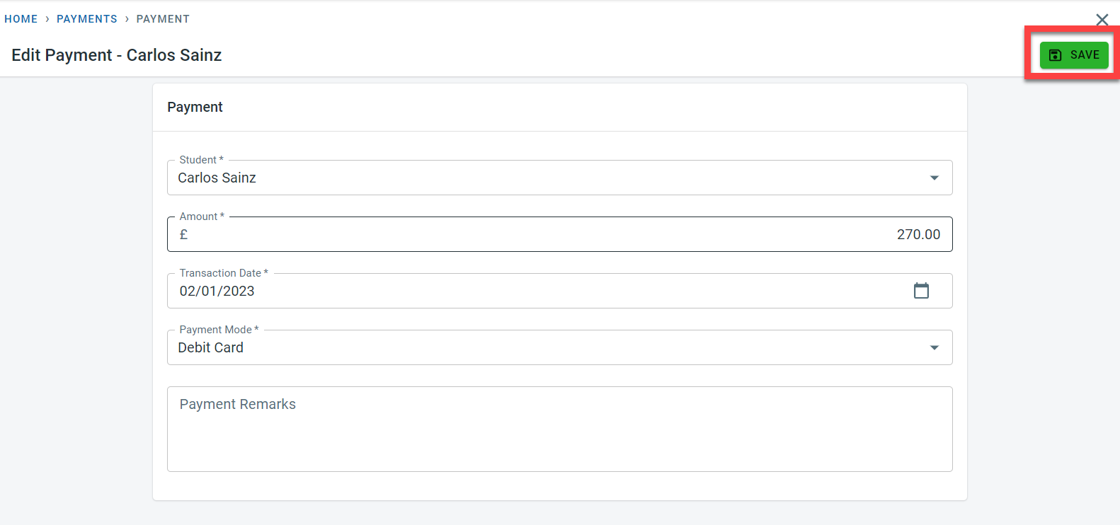Click on Edit in the payment to make changes to the payment