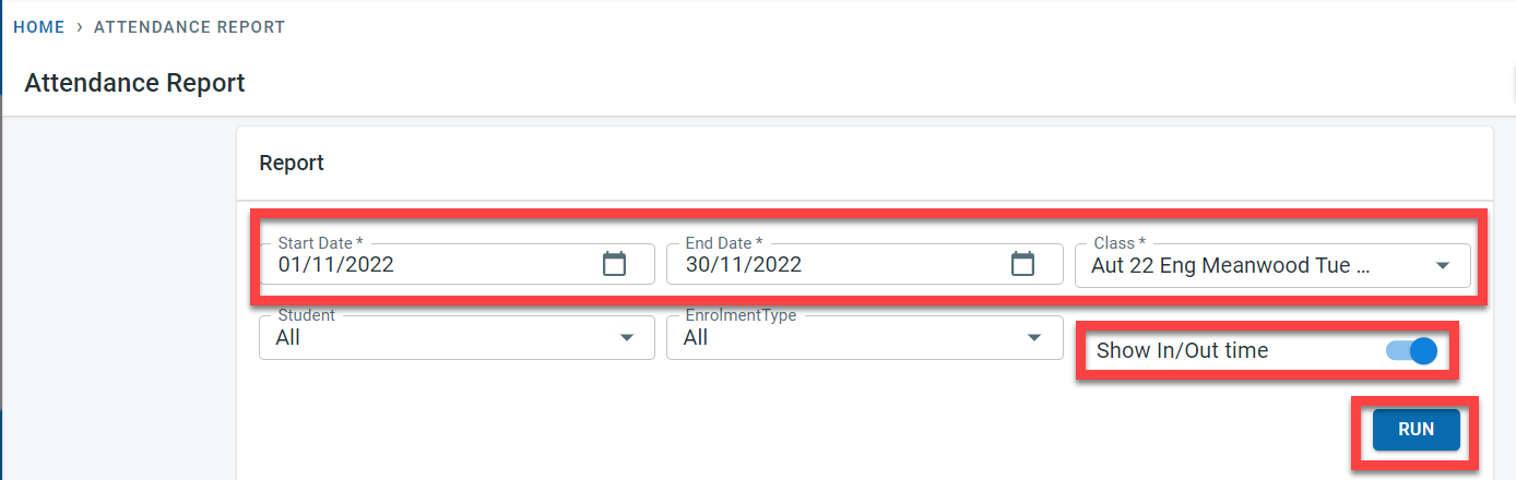 If the “Record in and out time” was activated for the class , there will be a radio button for the class to show the actual in and out time for the students.